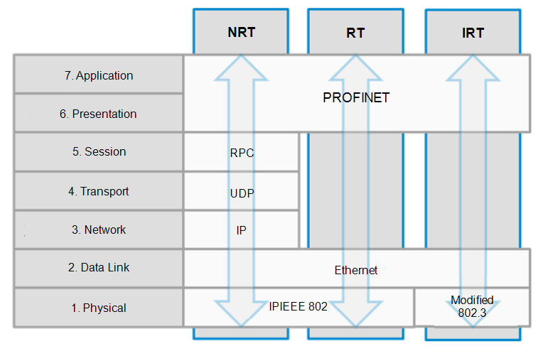 PROFINET uses Layer-2 Real Time (RT) frames (EtherType 0x8892) for cyclic I/O. TCP/UDP (port 34964) are used only for non-real-time services such as configuration.