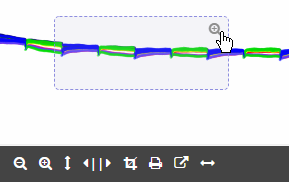 | Dessine une zone, avec le curseur, sur laquelle on souhaite zoomer. Cliquez sur l'icône + dans la zone dessinée pour zoomer. |