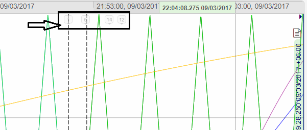 Lorsqu'il y a des messages (et des annotations) sur le diagramme, ils sont indiqués par de petits indicateurs avec le nombre de messages. Cliquez sur un indicateur de message pour voir les messages enregistrés.