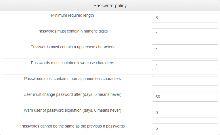 - Définissez les paramètres qu'un mot de passe doit satisfaire pour être acceptable.